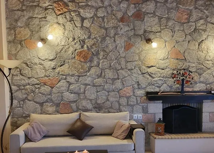 Die 3-Zimmer- Villa Τα Πέτρινα Στο Σκεπαστό Kalavryta liegt in 3 km Entfernung vom Kloster Agia Laura und bietet Wandern und Skifahren für aktive Gäste. Diese Villa verfügt über ein Privatparkplatz und eine Terrasse mit Aussicht auf die Berge.